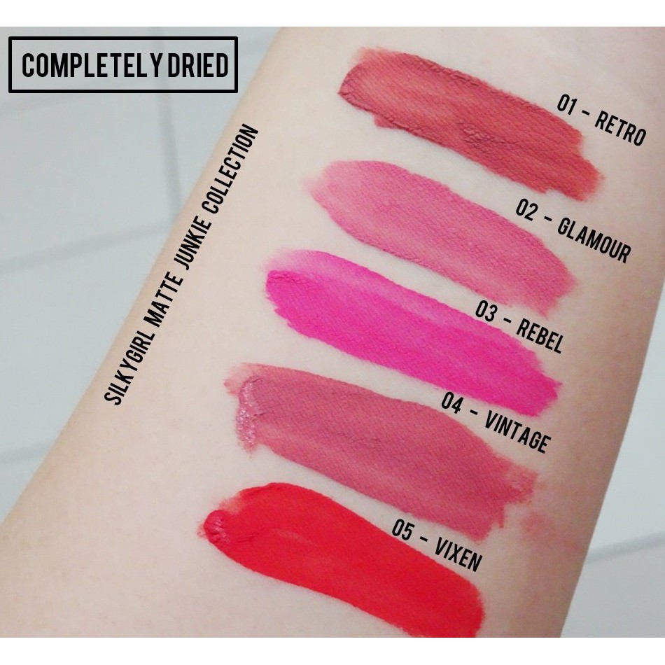Warna lipstik silkygirl matte junkie. Silky matte junkie lip cream pilihan yang oke ladies selamat bertemu lagi di review lainnya. Retro glamour vintage darling dolly artsy rouge cupid terracotta dan enigma. Dengan koleksi warna yang lebih bold lipstik silkygirl terbaru bisa membuat anda lebih bebas berekspresi melalui makeup. Warna yang aku punya ini wearable banget buat dipakai ke kampus hangout atau ngedate sama pacar dan masuk ke semua warna kulit.